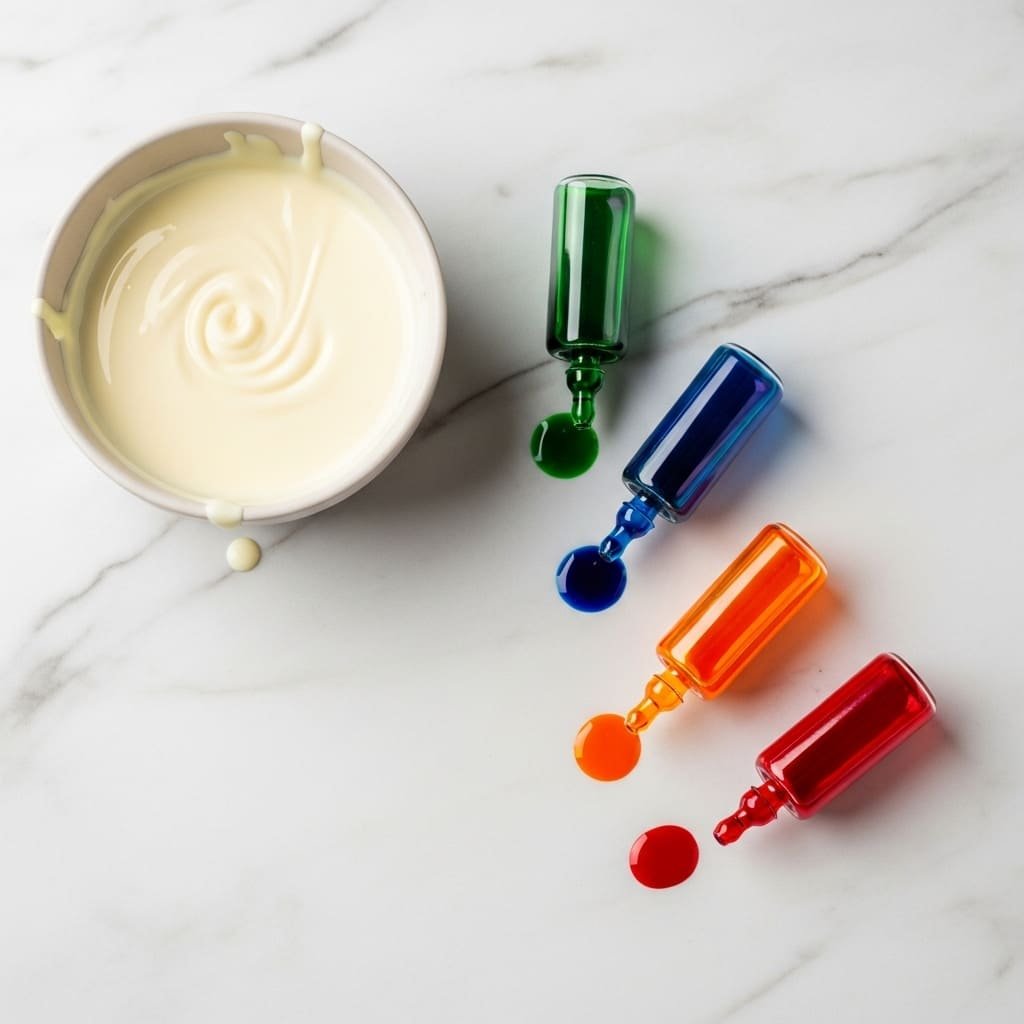 - Mix melted white chocolate with your chosen colors.