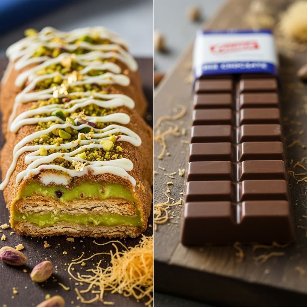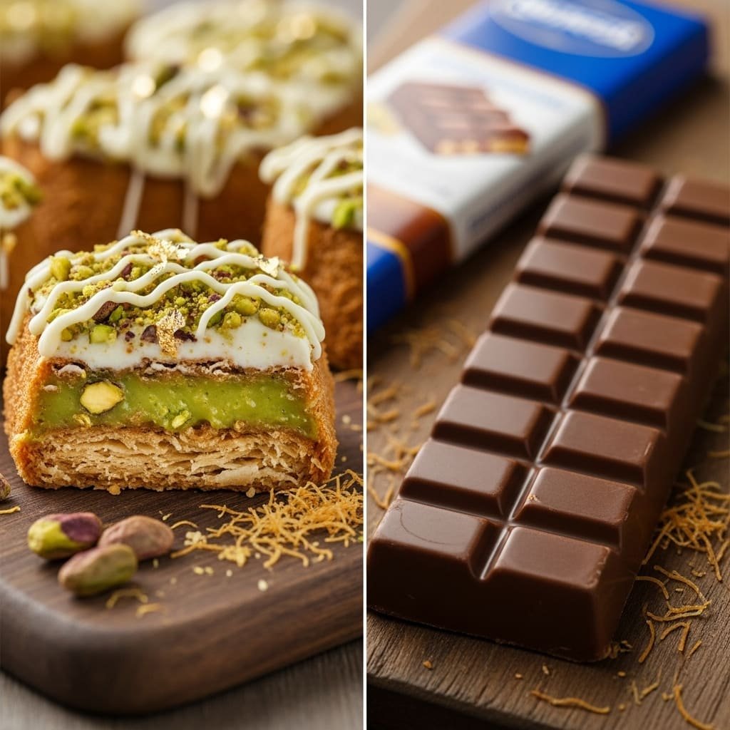 A Dubai Chocolate Bar is a trendy Middle Eastern-style dessert that combines: