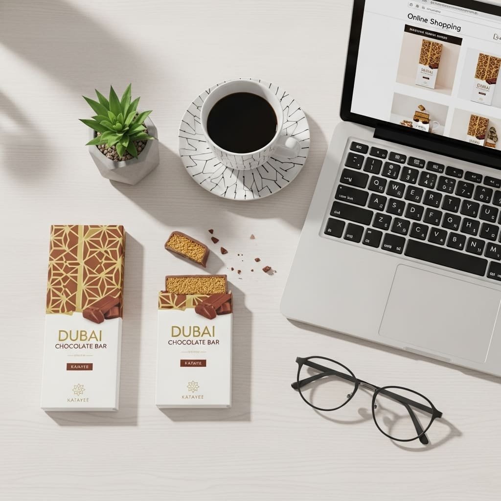 - Offers Dubai-style chocolate bars with pistachio, Lotus, and dark chocolate variants.